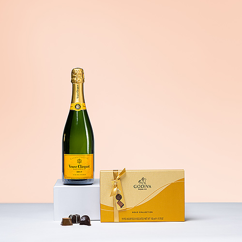 The irresistible duo of iconic Godiva Belgian chocolates and world-renowned Veuve Clicquot French Champagne brings together two of life's most cherished luxuries.