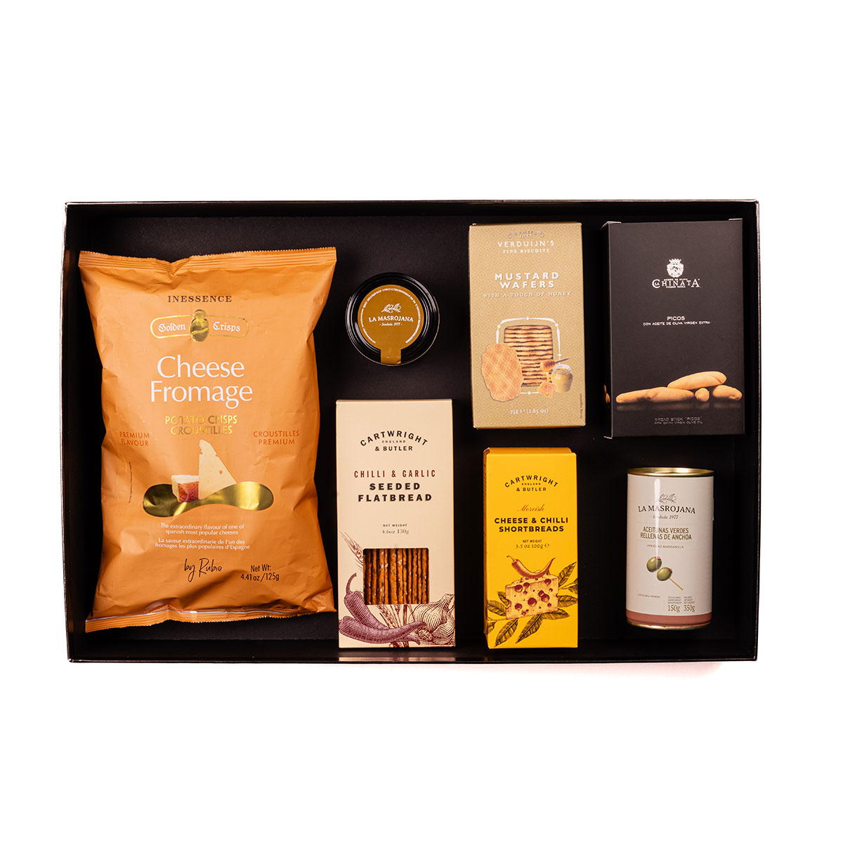 Ingredients: Potatoes, sunflower oil, olive oil and cheese flavouring [WHEY powder, salt, CHEESE powder (cheese, emulsifier (E 339)), aromatic, sugar, BUTTER powder, MILK powder, acidity regulator (lactic acid (E270)), anti-caking agent (silicon dioxide (E551)]