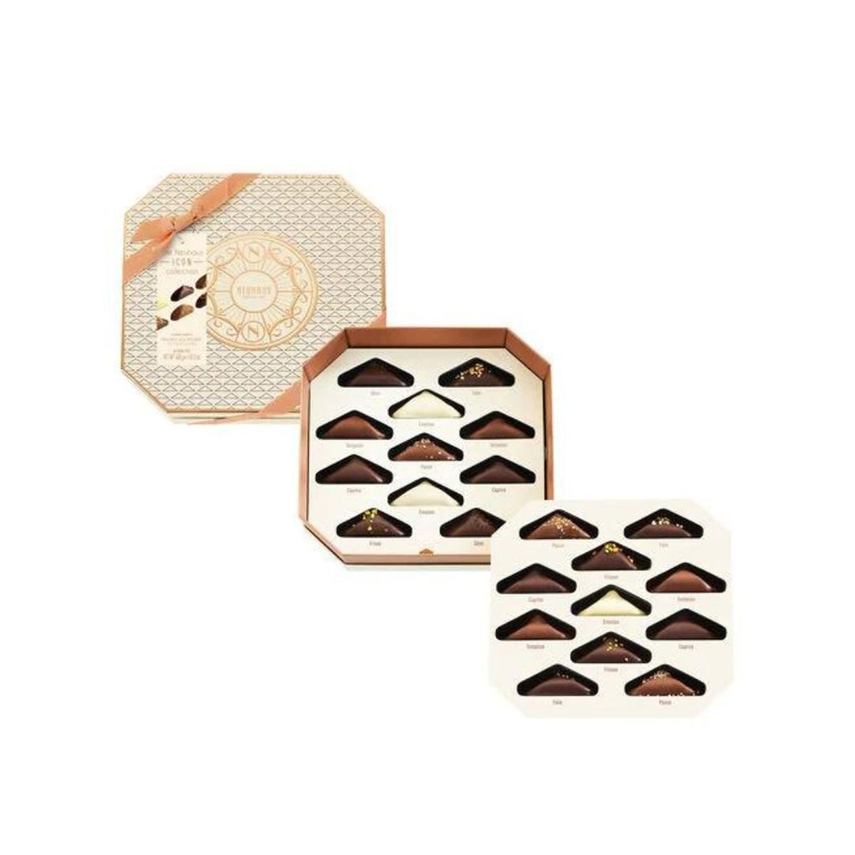 Le nouveau coffret Neuhaus Icon Collection contient 22 pralines au chocolat emblématiques Irresistibles, fourrées à la main avec de la crème fraîche ou de la ganache. Cette édition spéciale contient deux Irresistibles en édition limitée, le Frisson et la Folie.